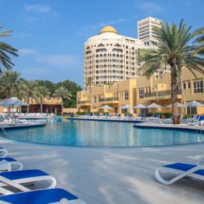 Rilassati all’Al Hamra Residence sulla bellissima spiaggia privata di sabbia bianca e goditi la posizione strategica sulle rive del Golfo Arabico.